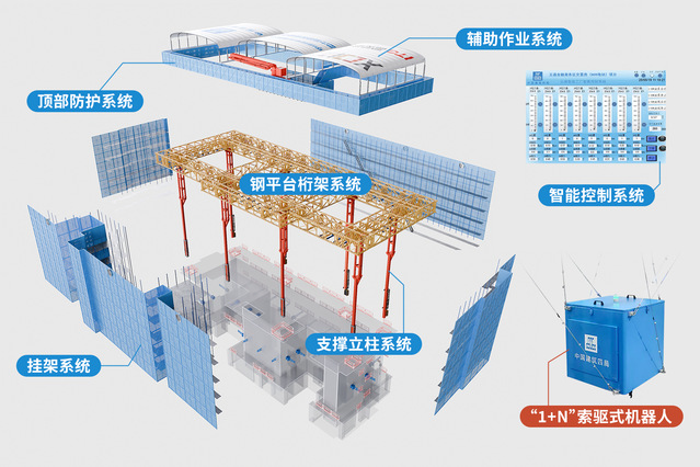 随后新生们深入施工现场,近距离观摩轻型造楼机作业,对智能技术落地有了更直观认知。技术人员介绍了本工程采用的住宅楼轻型造楼机,该造楼机为项目现场提供类工厂化的作业环境,不仅达到传统的安全防护功能,还可实现标准化程序化模块化的智能建造系统支撑。技术人员还重点介绍了云端智造工厂全场景建造应用,如:集成智能监控、误差自动修正与一键提升功能减少人为干预;全封闭施工体系有效控制现场扬尘和噪音,消除高空敞顶作业风险;恒温防风雨环境系统提升全年有效作业时长30%以上;搭载智能化建筑机器人接口平台,通过工序标准化与机器人协同作业,降低人力依赖并提升施工精度;依托智能控制系统实现周转材料精准调配,施工能耗较传统模式有效降低等。互动环节中,新生们围绕 “AI优化施工进度”“智能机器人复杂工况适应力”“行业人才需求变革”等问题积极提问。技术人员结合案例详解AI在解决施工难题、提升质效中的作用,让大家深刻意识到:人工智能已成为土木工程专业的核心技能方向。